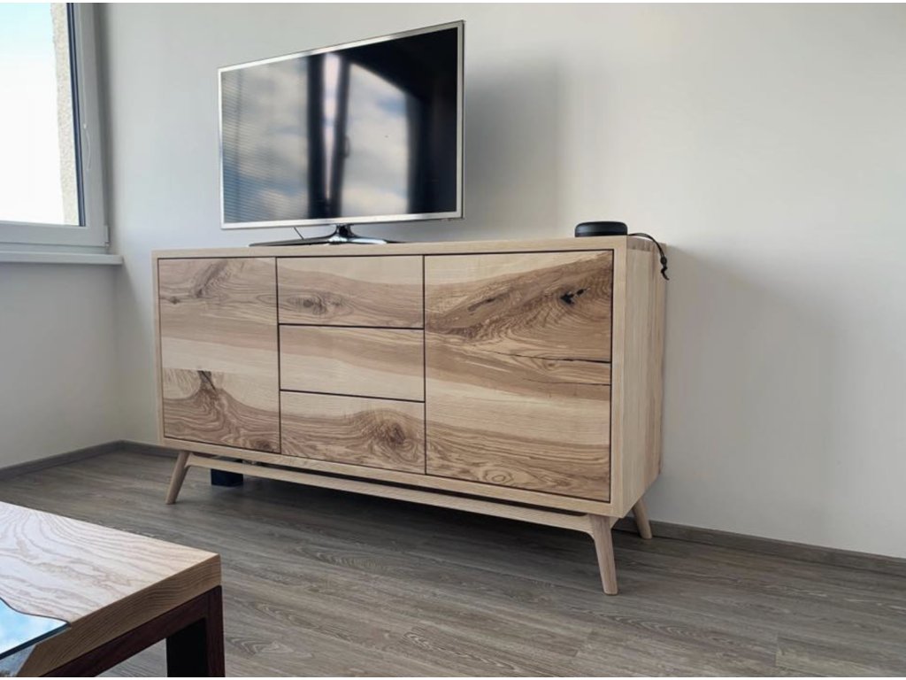 Jasanová komoda s průběžnou kresbou. Čistý, jednoduchý design.