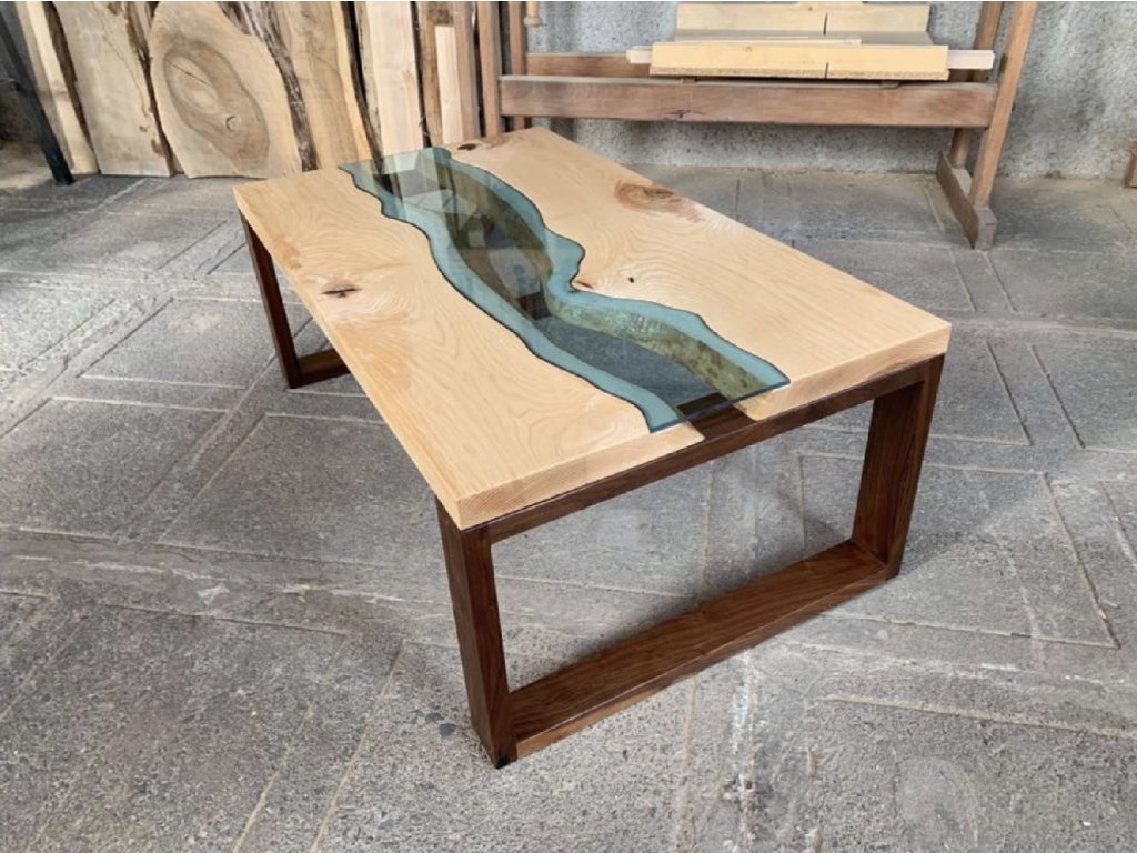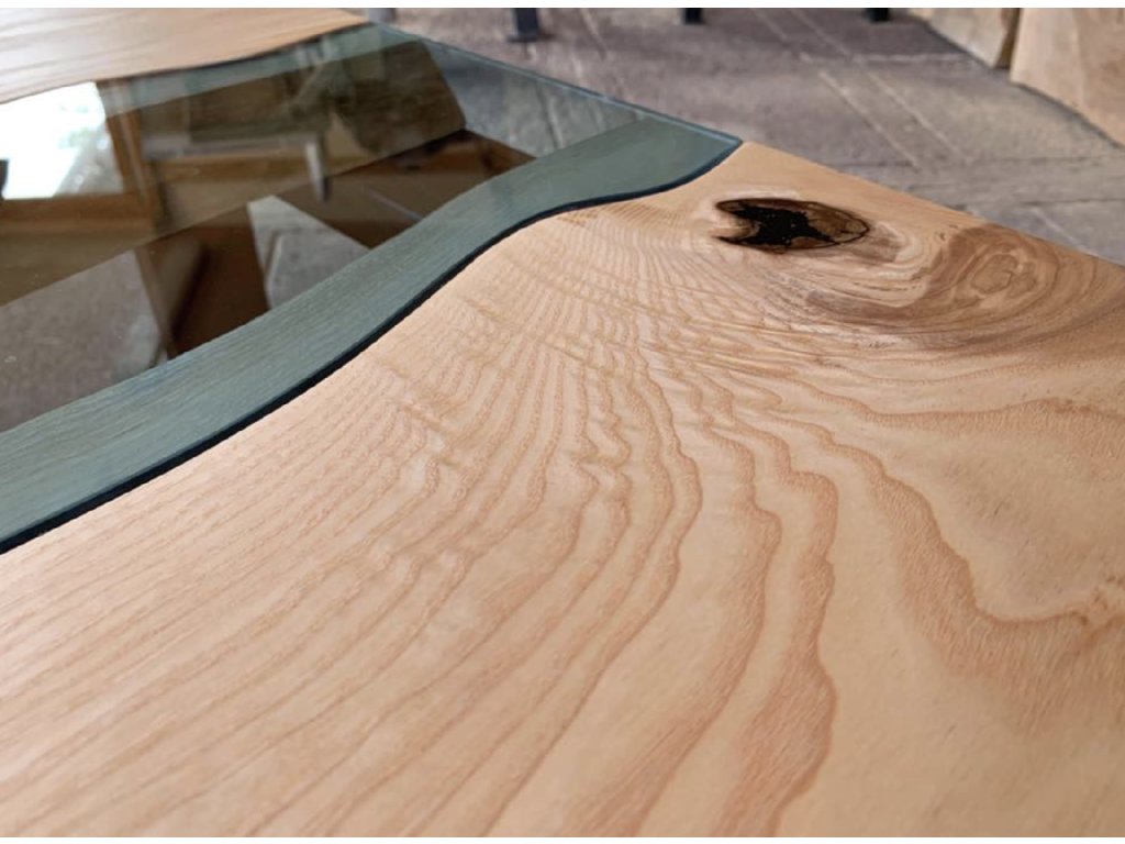 Jednoduchost, elegance a originalita. Rivertable se skleněnou ručně řezanou částí.