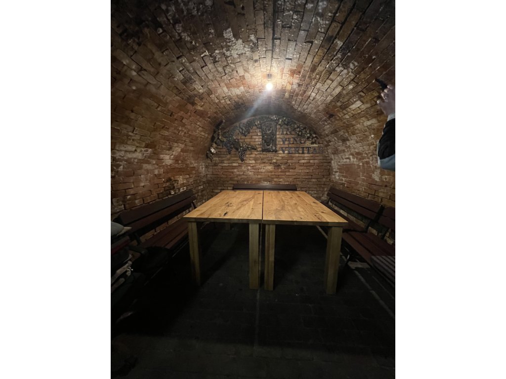 Každý stůl je vybaven jednou nastavitelnou nohou, která zajišťuje stabilitu i na nerovném povrchu. Masivní dubové dřevo dodává stolům pevnost a dlouhou životnost, zatímco jejich minimalistický design zapadá do atmosféry vinného sklepa a vnáší do prostoru přírodní eleganci.